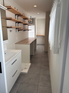 水回りとなるキッチンとランドリー部は、水に強くお手入れが簡単なフロアタイルを採用しました。